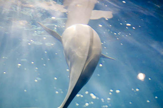 因为白豚移动很快,追焦也赶不上,最后焦点留在尾巴了