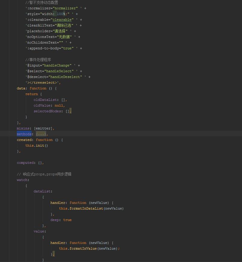 当然在这个TgElTreeSelect你还可以放入methods、vue中的生命周期、计算属性、侦听器等等