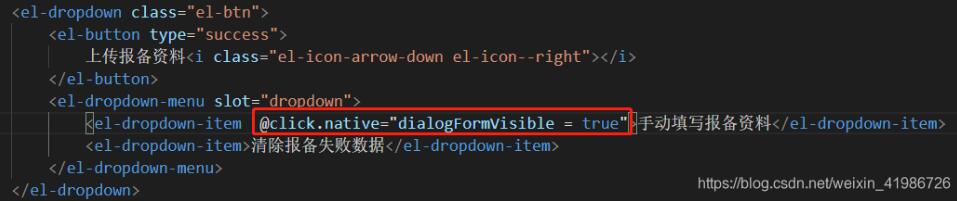 补充知识:vue中使用elementUI的下拉框(el-dropdown)添加点击事件无效的解决方案