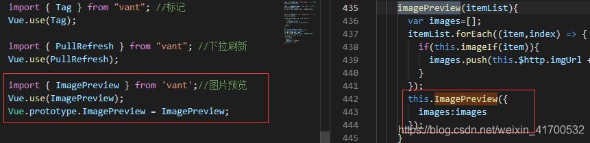 5、vant的组件,我是按需引入的,在main.js中引入,使用toast组件时,引用了,直接在要用的页面的方法里this.$toast()这样就可以,然后使用vant的图片预览组件的时候以为这样也可以,结果gg,发现直接在页面上引入,照着文档那样写就可以。