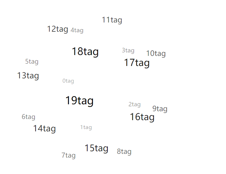 - 根据标签的坐标,将标签绘制出来,x,y坐标通过标签的位置来表示,z坐标通过标签字体的大小和透明度来表示