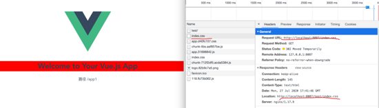 # 访问的资源 /index.css 302 临时重定向到 /app/index.css