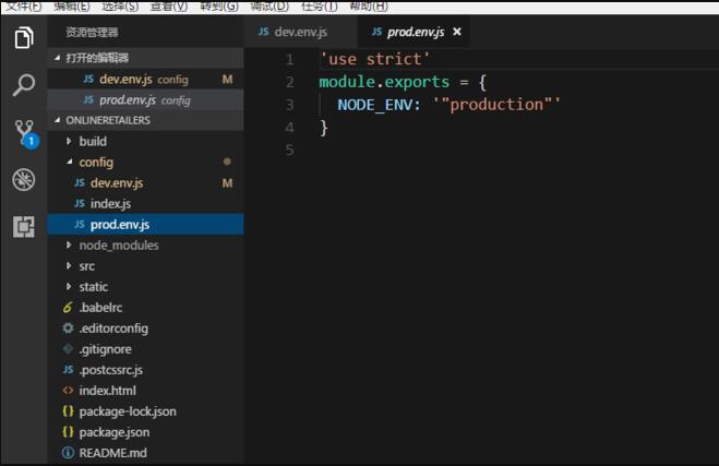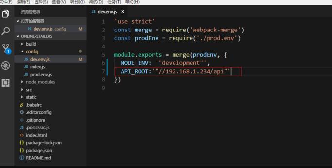 config文件夹还有2个文件dev.env.js和prod.env.js 分别是开发环境和生产环境配置文件,我们需要分别进行修改。