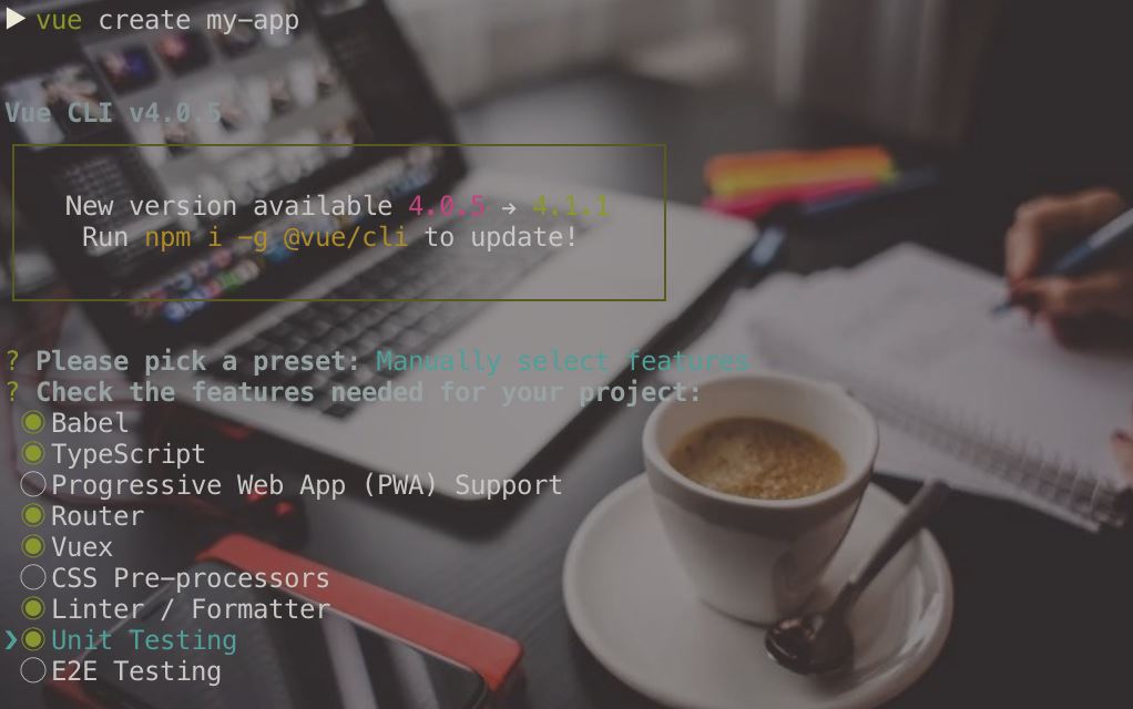 只需运行vue create my-app。