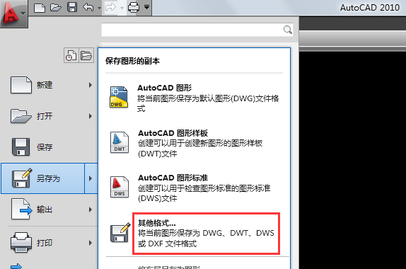 在任何版本的CAD中,可以将图形文件【保存】或【另存为】为当前版本以及更低版本的DWG文件或DXF文件。