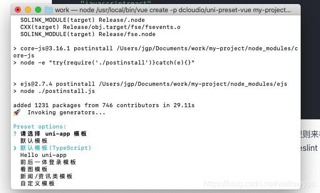 我们先选择默认模版(Typescript)当然也可以选择其他模板