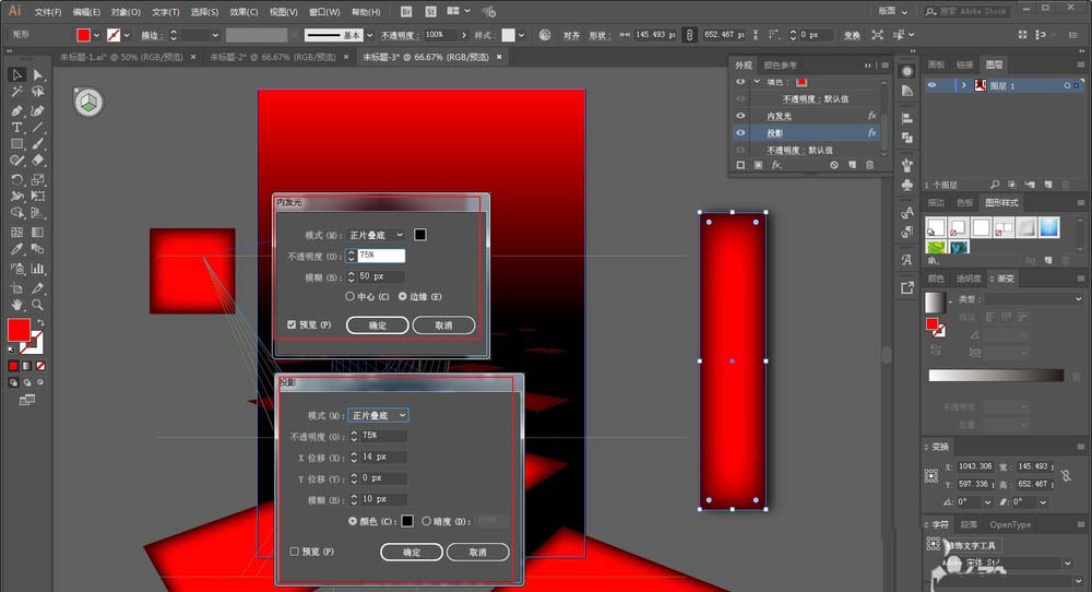 5、再画一个长条矩形,添加效果-风格化-内发光和投影