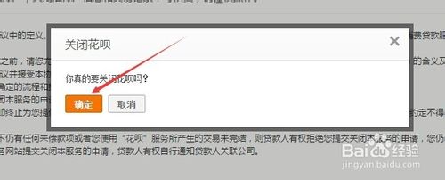 点击后,支付宝花呗弹出关闭花呗对话框,这里点击确定就可以了,如下图所示。