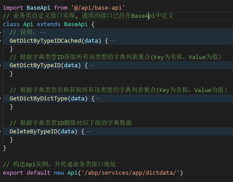 其中JS类的BaseApi具有常规的增删改查接口,如下所示。