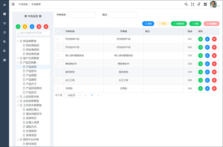 其中包括对字典大类的维护,以及对应字典大类的数据列表数据的添加处理。