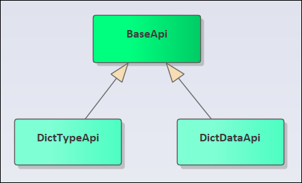 加入我们定义子类有DIctType、DictData等业务类,那么这些类继承BaseApi,就会具有相关的接口了,如下所示继承关系。