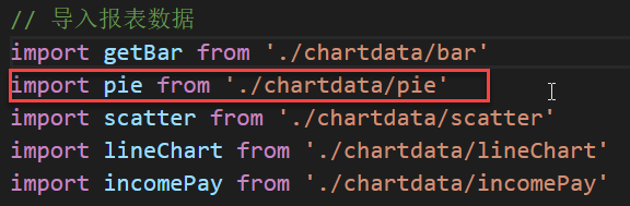 一般对于图表的数据,由于处理代码可能不少,建议是独立放在一个JS文件里面,然后我们通过import导入即可使用。