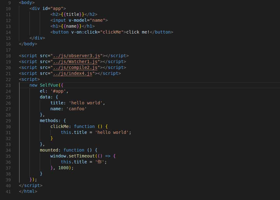 最后我们再次改造一下SelfVue,是它的格式看上去更像vue: