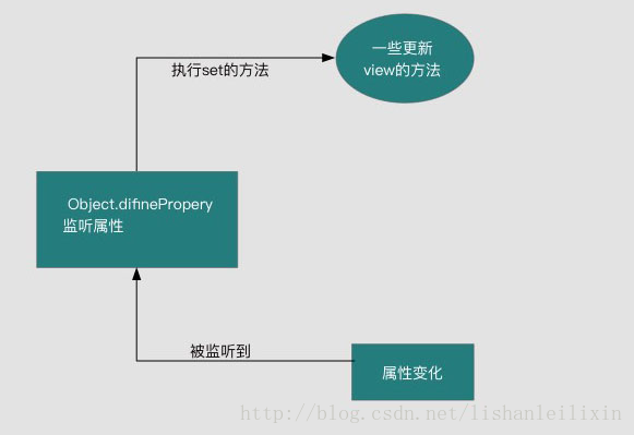 data变化更新view的重点是如何知道view什么时候变化了,只要知道什么时候view变化了,那么接下来的就好处理了.这个时候我们上文提到的Object.defineProperty( )就起作用了.通过Object.defineProperty( )对属性设置一个set函数,当属性变化时就会触发这个函数,所以我们只需要将一些更新的方法放在set函数中就可以实现data变化更新view了.