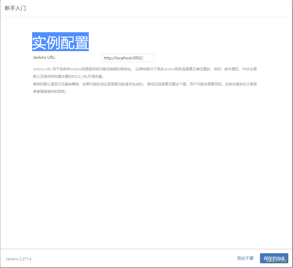 输入完成后点击按钮保存并完成就会进入下一个界面实例配置