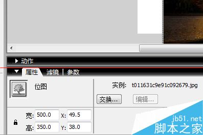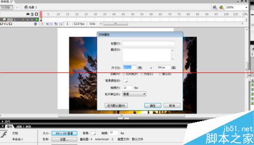 第三步:双击舞台大小,修改为500*350,这里我们是为了方便,大家可以根据实际情况选择大小