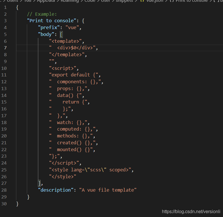 以上就是暴躁鞋子最近收集整理的关于vsCode一键生成vue模板的全部内容,更多相关vsCode一键生成vue模板内容请搜索靠谱客的其他文章。