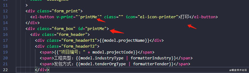 <div id="printTest" > <p>明月照于山间</p> <p>清风来于江上 </p> </div> <button v-print="'#printTest'">打印</button>