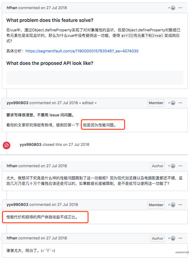 其实原因并不是因为Object.defineProperty()存在漏洞,而是出于性能问题的考虑。 Object.defineProperty 在数组中的表现和在对象中的表现是一致的,数组的索引就可以看做是对象中的 key 。