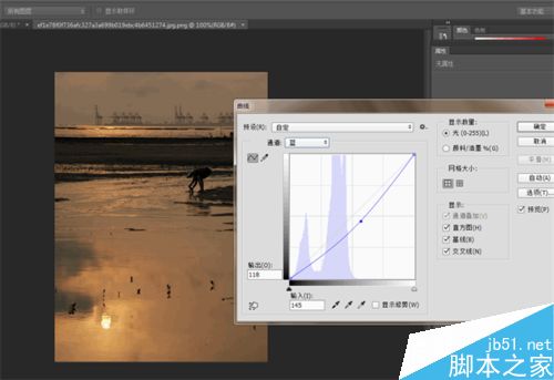 通道选择RGB,S型曲线,增加对比度,如图所示