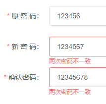 到此这篇关于Vue 两个字段联合校验典型例子--修改密码的文章就介绍到这了,更多相关Vue修改密码内容请搜索靠谱客以前的文章或继续浏览下面的相关文章希望大家以后多多支持靠谱客!