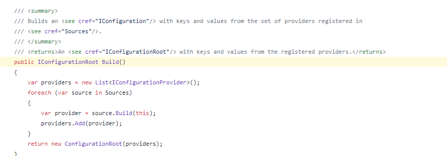 来看 ConfigurationBuilder 在 Build 的时候做了什么,ConfigurationBuilder 源码