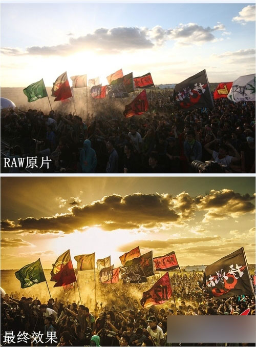 一直有许多朋友很喜欢我去年在上海长江迷笛音乐节上拍摄拍摄的这张"沙场秋点兵",也很好奇我从前期到后期的一个流程是怎样的。独乐乐不如众乐乐,今天我就和大家分享一下这张照片的调色思路。 这张照片是由佳能5D2+腾龙17-35 F2.8-4拍摄的,RAW格式输出,后期在LR中完成调节。先来看一下前后期对比。