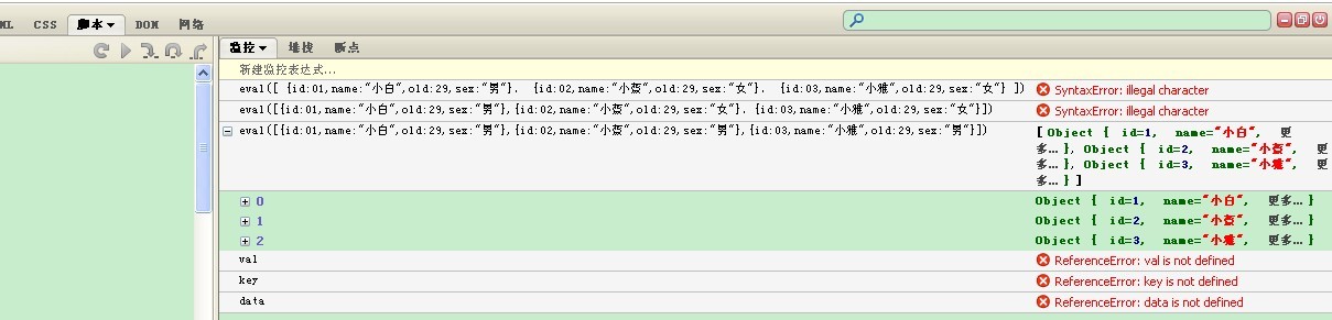 写到.jsp、.txt文件中的json数据,没有被解析出来,Firebug中调试了一下,10行断点下一步直接结束,