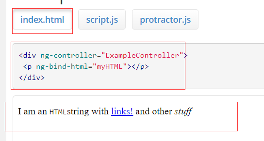 之后又在网上找了找,没找到合适的办法,后来询问学长,学长高数我有一个ngBindHtml的标签,于是去看了看官方文档,用法和效果如下