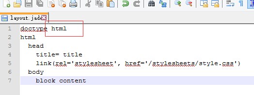 安装了这个模块我们还需要要修改一下views下的layout.jade文件的第一行的doctype 5改成doctype html.这样再重新执行node app.js我们这个网站就可以正常运行了。