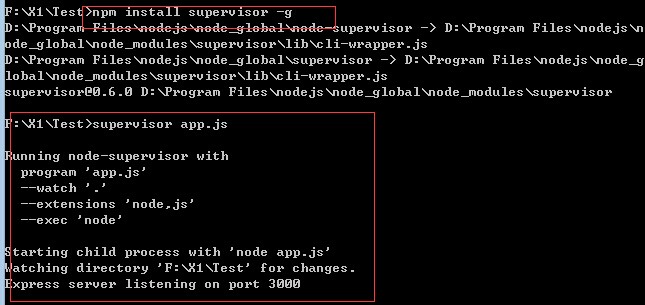 这样我们就不用node命令来启动服务,直接使用supervisor app.js来就可以了。