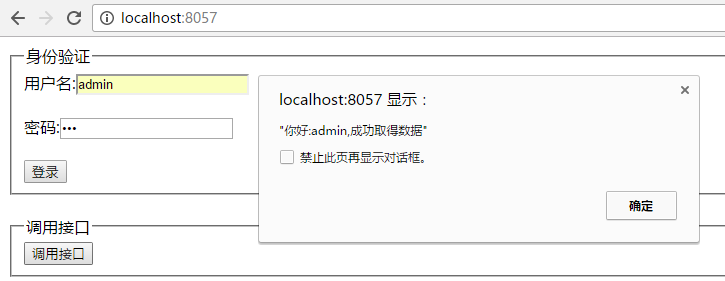 前端站点只有一个html页面,包含两个简单功能:调用登录接口进行登录,以及调用被身份验证保护的获取数据的接口