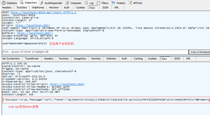 //调用api站点的登录接口,接口在登录成功后返回一个token。