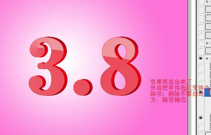 5、取消选区后稍微把文字移开一点位置,做出立体效果。然后再调出文字选区转为路径,删除不要的地方,适当用路径描边。