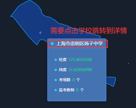 需要在echarts tooltip点击学校的名称,跳转到详情页面;项目是从上海市---> 某个区----> 具体的学校(在最后一级的tooltip中绑定一个点击事件)