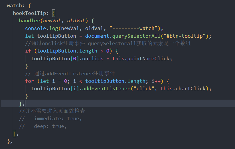 在formatter中给hookToolTip赋值,添加一个id,然后通过watch去检测dom元素,可以通过onclick去绑定事件,也可以通过addEventListerner去注册事件