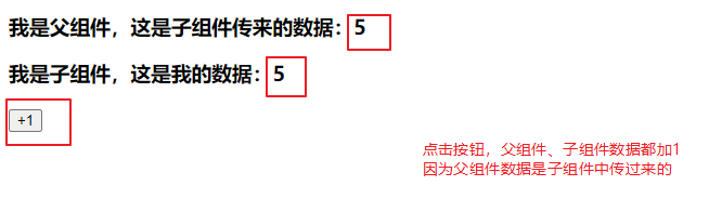 子组件向父组件共享数据使用自定义事件。示例代码如下