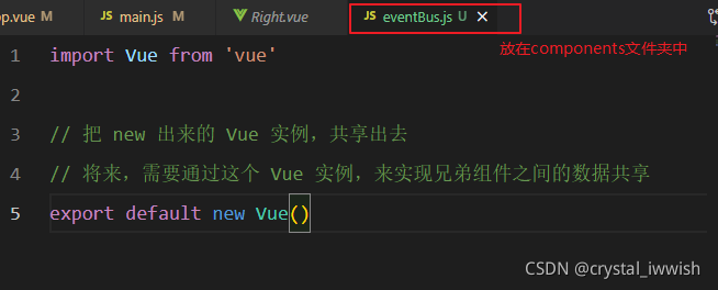 1.创建 eventBus.js 模块,并向外共享一个 Vue 的实例对象