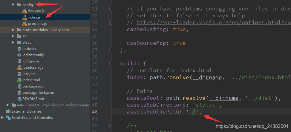 出现这种情况要分两个处理方式(vue-cli2和vue-cli3),先说vue-cli2; 首先找到config/index.js文件,将assetPublicPath的路径改为“./”即可,