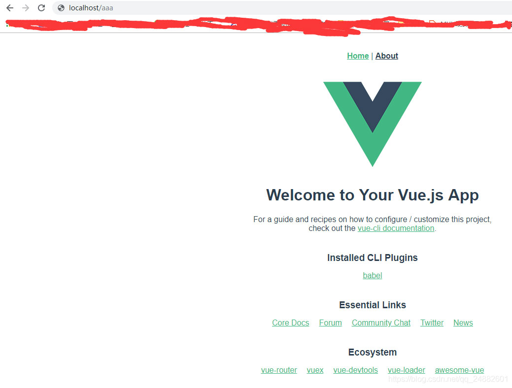 到了这步本来就可以了,但是有的小伙伴还是没有显示出来,那是因为你的路由模式的关系,你把你的路由模式改成“hash”就行了,虽然有点丑陋,但是至少功能出来了,如果你不想使用“hash”模式,非要用历史模式的话,本地是不行的,必须要服务器配合,这里就说下怎么使用nginx配合vue使用历史模式