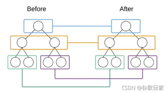 这是因为vue底层的Diff算法导致的。diff算法的处理方法是对操作前后的dom树同一层的节点进行对比,一层一层对比,如下图: