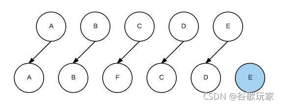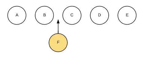 我们希望可以在B和C之间加一个F,Diff算法默认执行起来是这样的: