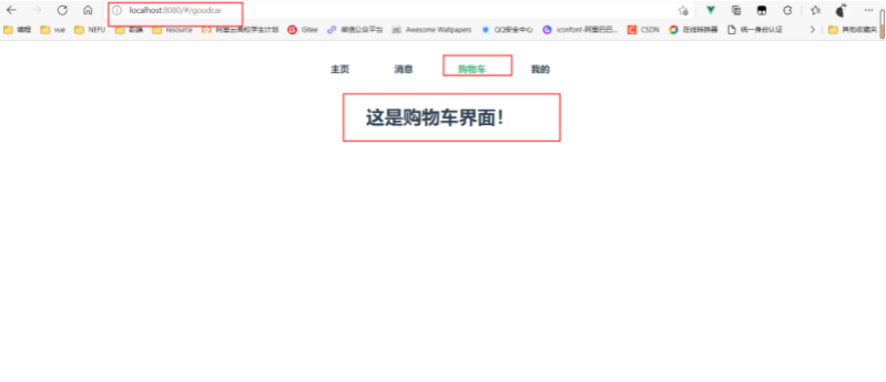 写一个类似淘宝的路由导航,包括:主页、消息、购物车和我的四部分。