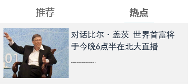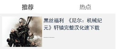 本文实现的是点击某个标题,标题字体加粗,并随之切换相应的div内容,如下(点击推荐或热点)