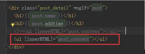 <ul [innerHTML]="post.content"></ul> 通过innerHTML属性绑定调用产品详情post.content