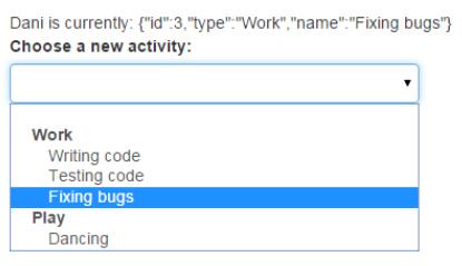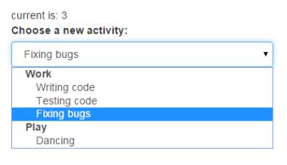 <select ng-model = "engineer.currentActivity" class="form-control" ng-options = "a.name group by a.type for a in activities" > </select >