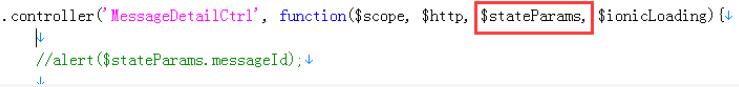 2:controll里面接受(注入$stateParams,然后 "$stateParams.参数名)