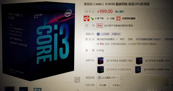 这款酷睿i3-8100是即将取代上一代i3-7100产品,相比上一代产品在物理核心数方面得到了提升,使得这款产品的性能十分靠近上一代酷睿i5,不过目前比较遗憾的是,暂时只有搭配高端的Z370主板使用,有点拉大预算,如果等到明年的B360主板上市就非常划算了。