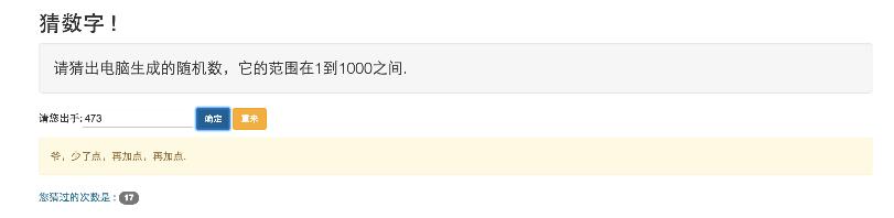 <p class="well lead">请猜出电脑生成的随机数,它的范围在1到1000之间.</p>