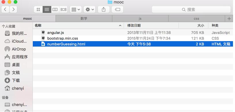 在上图所表示的文件组成中,angular.js 是我们赖以开发应用的框架文件,bootstrap.min.css是用于设计UI界面的界面库文件,而numberGuessing.html 将是我们要开发的应用主体文件。接下来我们将一步一步向numberGuessing.html添加代码,逐步增加应用的功能。